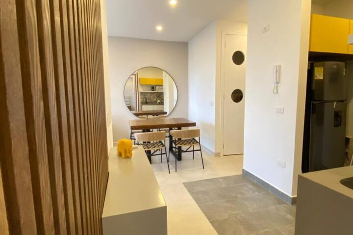 En un exclusivo apartamento de 70 metros cuadrados construidos mmás 8 mts cuadrados de terraza. Ubicado en una zona residencial y campestre, encontrarás un espacio moderno y amoblado con 2 habitaciones y 2 baños. Disfruta de la iluminación natural, cocina equipada con isla y vista panorámica desde el balcón y a 150 mts de la plaza. Además, cuenta con jacuzzi, aire acondicionado, gas natural y vigilancia privada 24/7. El edificio ofrece piscina, sauna, zonas verdes, ascensores inteligentes y acceso para discapacitados. Ideal para familias, con zona infantil, salón comunal y parqueadero.